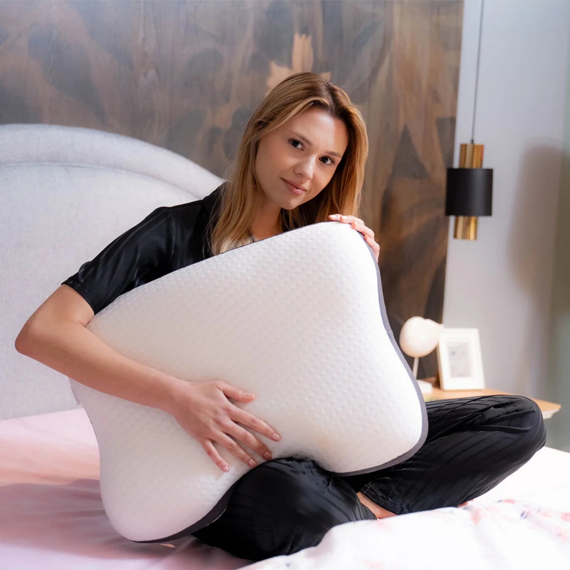 özel yan uyku formuyla hava yollarını açık tutar, nefesini rahatlatır, horlamayı azaltır.